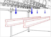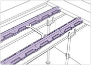 Una volta realizzato il sistema di sostegno, posizionare gli elementi a trave in ABS per creare una base di appoggio stabile per i casseri. Successivamente vengono posizionati i casseri SKYRAIL e gli accessori di chiusura SKYBLOCK. Una volta completata l’installazione, il sistema è calpestabile a secco. Lo scassero del sistema SKYRAIL è possibile 6-7 giorni dopo il getto del calcestruzzo rimuovendo in sequenza i puntelli, le travi gialle e le travi in ABS. L’operazione di scassero parte sempre dal basso.