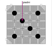 Posizionare i piedini come indicato nella foto e ribaltare la piastrella appoggiando i piedini a terra;