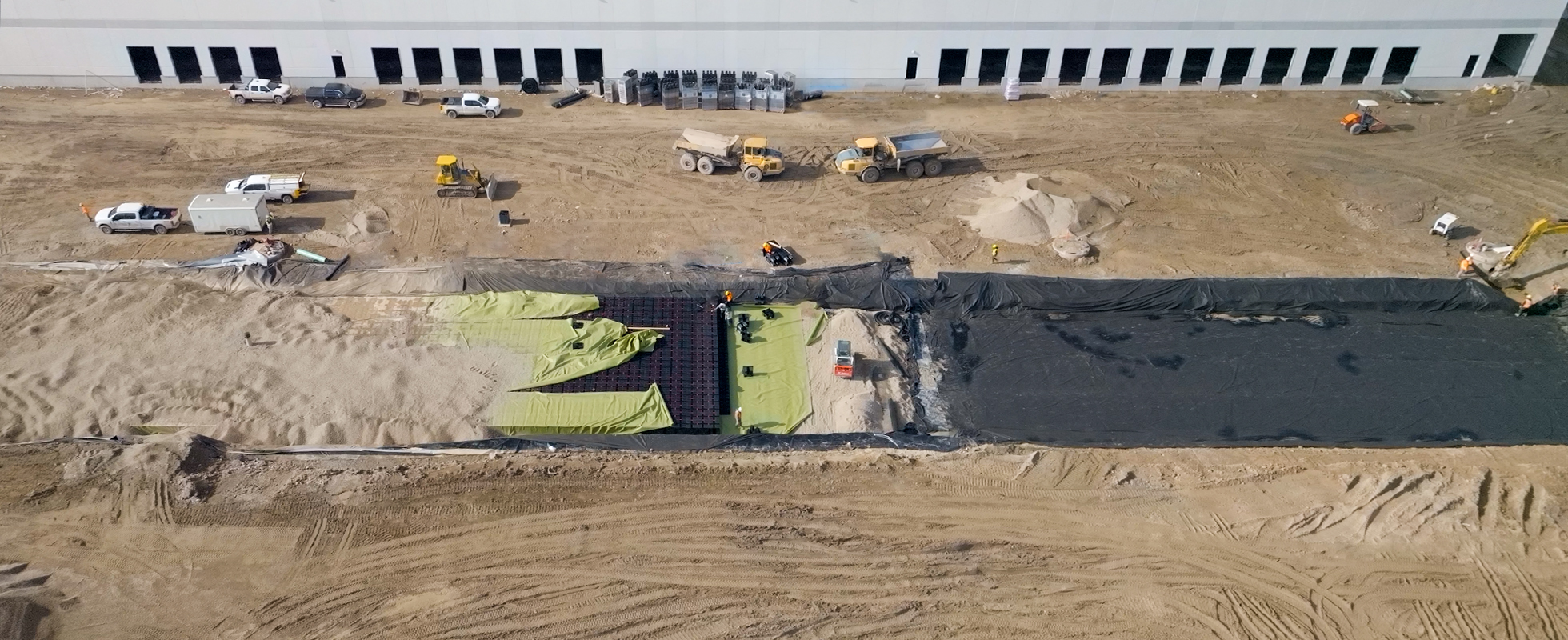 Entrambi i serbatoi sono stati costruiti ad una profondità di scavo di 2,7 m, utilizzando un solo strato di moduli Aquabox, e progettati tenendo conto della falda sotterranee significativamente elevata.