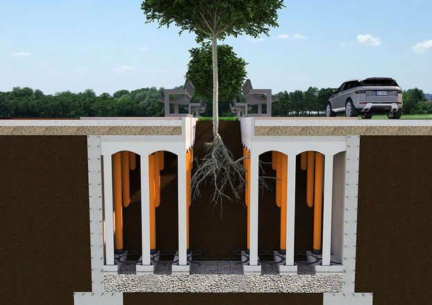Con il sistema NUOVO ELEVETOR RADICI si creano delle celle di protezione sotto il livello stradale che permettono la crescita libera e incontrastata delle radici, favorendo cosi la vita dell’elemento verde e la funzionalità del tratto stradale.